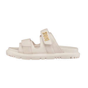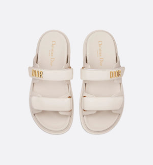 The Dioract Slide in White Lambskin features smooth, luxurious leather and a modern design, delivering comfort with signature Dior style